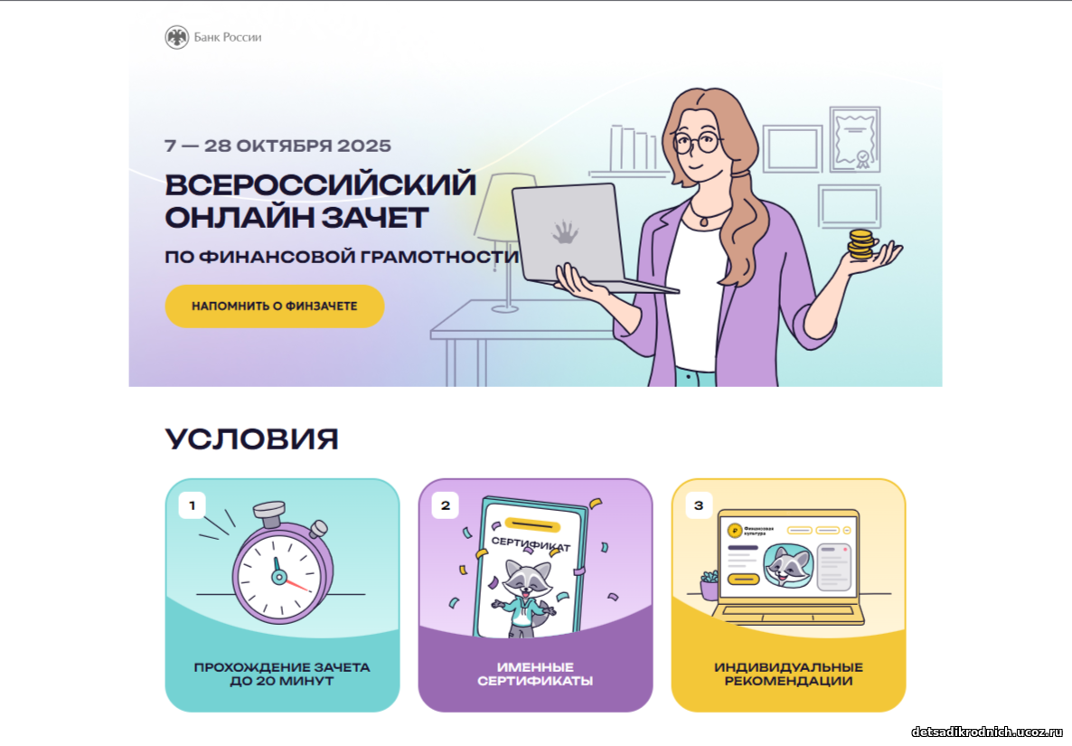 Банк России информирует о проведении с 7 по 28 октября 2025 года VIII Всероссийского онлайн-зачета по финансовой грамотности для всех категорий населения.